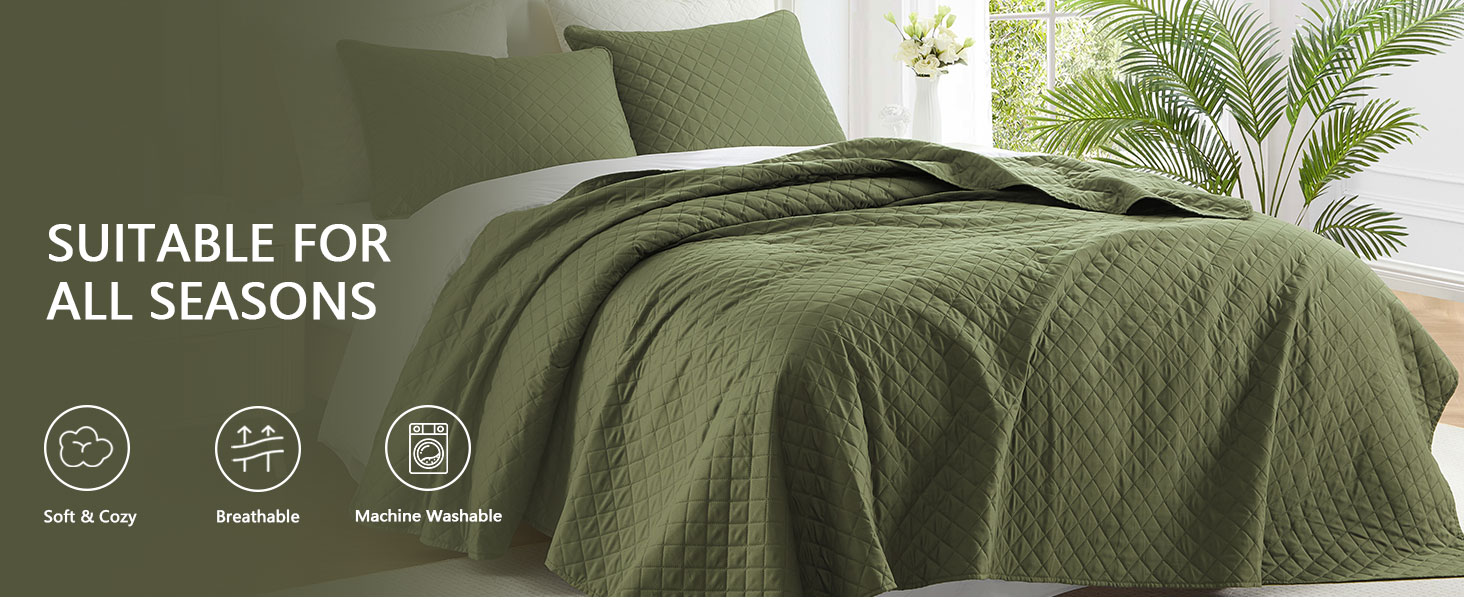 Homelike Moment Twin Quilt Set, Lightweight Quilt, Soft Twin XL Quilts Olive Green