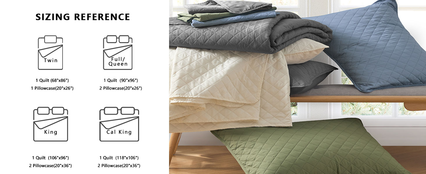 LIGHTWEIGHT QUILT SET – Quilts twin size crafted from premium, breathable fabrics and whole piece microfiber filling, twin quilt sets easily fits well with any bedroom decor, and the geometric pattern adds interest and texture. Twin size 2 piece quilt set comes with 1 quilt (68″x86″) and 1 matching pillowcovers (20″x26″).